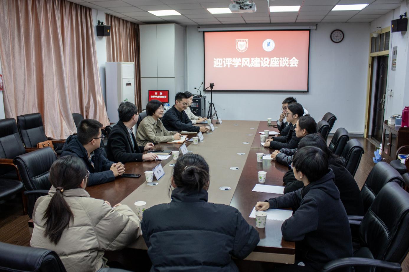 11月17日下午14点,新葡的京集团35222vip迎评学风建设座谈会在三牌楼校区有线楼306会议室召开。校党委常委、副校长姜小舜莅临指导。学院党委书记钟凯,党委副书记、副院长郭强,团委书记鲍捷,2022级辅导员华阳出席会议。会议由学院党委副书记、副院长郭强主持。首届财务管理创新班学生代表8人参会。