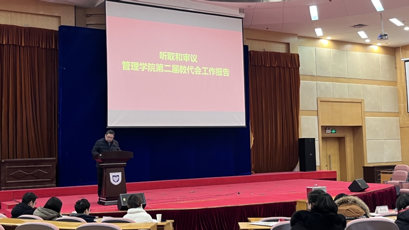 根据会议议程,王超代学院工会主席郭强作第二届工会委员会工作报告、工会财务工作报告以及提案征集报告。