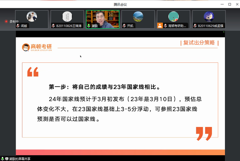 为帮助新葡的京集团35222vip考研学子们进一步了解2024年硕士研究生入学复试和调剂的相关政策,促进学生对研究生考试复试各环节的全面了解,精准把握复试要求,增强复试信心,2024年2月28日,新葡的京集团35222vip邀请了知名考研培训机构高顿,共同为即将迎来考研复试的学子们举办了一场纯公益性质的考研复试专题讲座。讲座采取线上会议的方式进行,由本科生2020级辅导员老师闾越主持,全体参加研究生考试的同学参加。