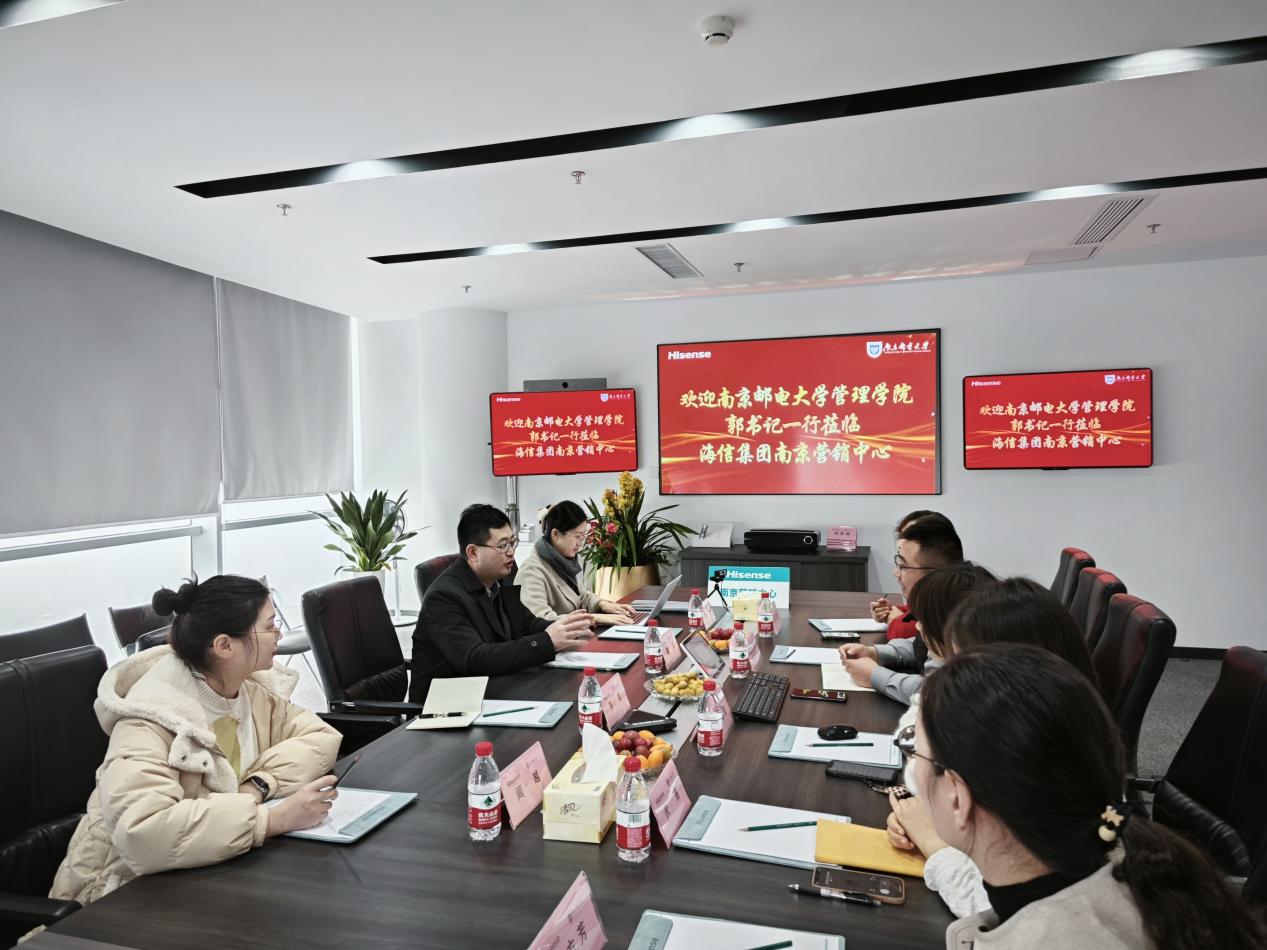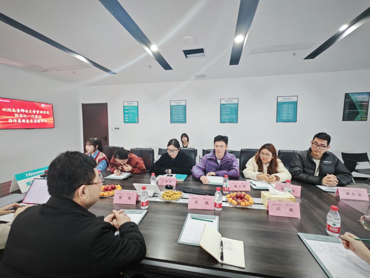 为深入贯彻落实国家有关稳就业的部署和要求,扎实做好学院2024届毕业生就业工作,进一步深化校企合作、挖掘就业岗位,3月5日上午,学院党委副书记、副院长郭强带队前往海信集团南京营销中心开展访企拓岗活动,学院分团委书记、2024届本科毕业班辅导员参加本次访企拓岗活动。海信集团南京营销中心总经理吕朝云,华东区人资行政负责人张学会等领导热情接待我院一行,双方进行深入座谈交流。