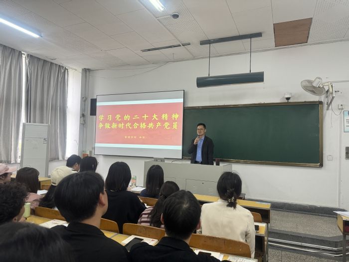 在庄严的国歌声中,开班仪式拉开序幕。钟凯在讲话中对参加本次培训班的学员表示欢迎和祝贺,他希望全体成员通过系列课程的学习进一步提高思想认识、端正入党动机,珍惜集中学习的机会,不断提升自己的理论水平,同时要严格遵守培训班的纪律要求,在理论学习的基础上积极参加社会实践,以实际行动积极向党组织靠拢。本期学员代表徐李逸同学在发言中表示,入党积极分子应该深入学习、贯彻党的二十大精神,坚定不移听党话、跟党走,怀抱梦想又脚踏实地,敢想敢为又善作善成,立志做有理想、敢担当、能吃苦、肯奋斗的新时代好青年。唐捷对本期培训班的具体安排和要求作了详细介绍。开班仪式结束后,钟凯以《学习党的二十大精神争做新时代合格共产党员》为题为全体学员讲授了党课。