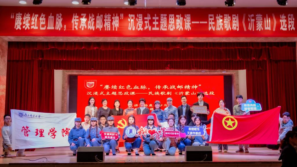 这堂沉浸式主题思政课以抗战历史为主线、以红色校史为脉络、以民族歌剧《沂蒙山》选段为载体,讴歌巍峨壮丽的革命岁月,感受沂蒙人民与人民子弟兵“生死与共,水乳交融”,传承“忠贞不渝,使命必达”的战邮精神。关工委老同志与新葡的京集团35222vip青年学子同演一台戏、同讲一堂课。融美于教,为学生搭建艺术沉浸式思政“大课堂”;化美于行,在实践中引导学生不负大时代,敢为人先“立潮头”。现场500余名师生的心再一次被“沂蒙精神”“战邮精神”感动着、拉扯着,共赴一场感人肺腑的沉浸式思政课,一场触动心灵的精神洗礼。