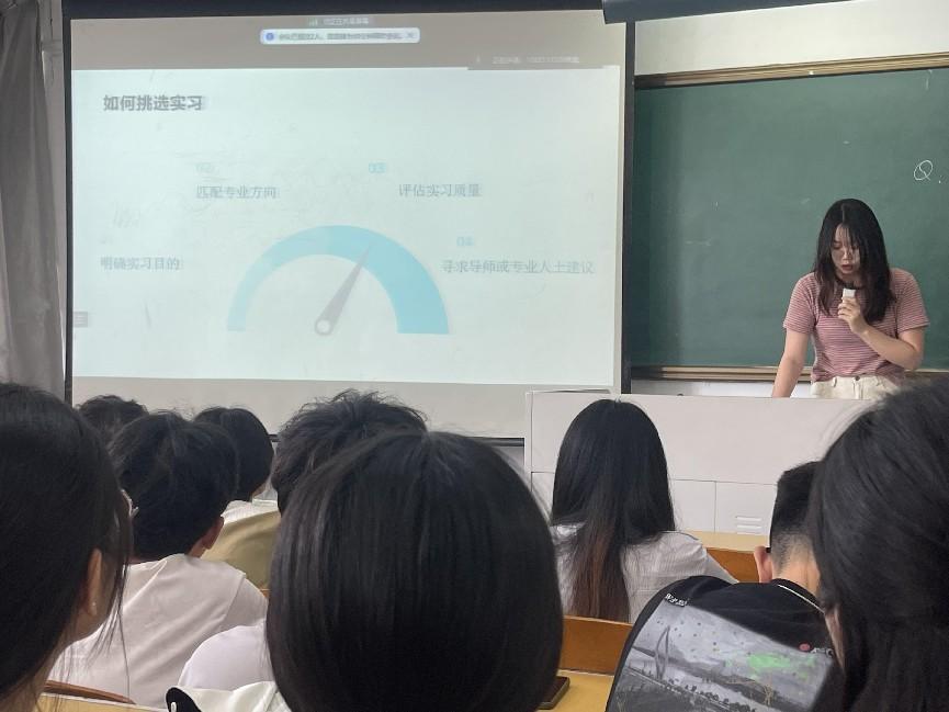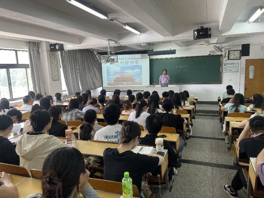 根据会议议程,田小丫同学分享了自身备战公务员并成功上岸的经验。她从笔试学习、时间安排、面试准备、课程选择等方面进行了全面介绍,为备考公务员岗位的同学们提供了实用参考。陶思云同学从聚焦简历制作优化和企业面试技巧,分享了个人求职经历,帮助同学们提升求职成功率、赢得理想工作机会。