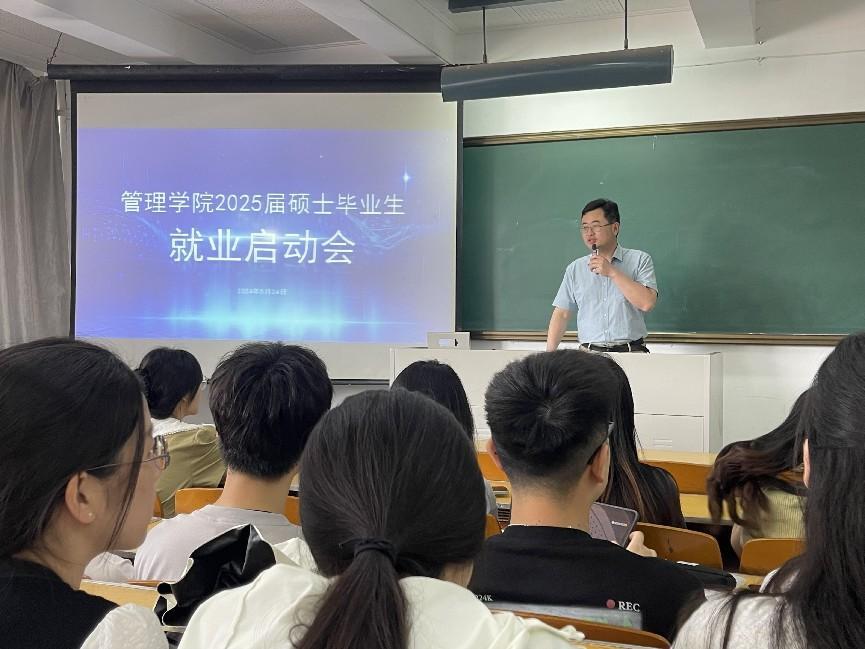 5月24日上午,我院举行了2025届硕士毕业生就业启动会。学院党委副书记、副院长郭强,学院分团委书记鲍捷以及2025届全体研究生参加会议,会议由辅导员王超主持。