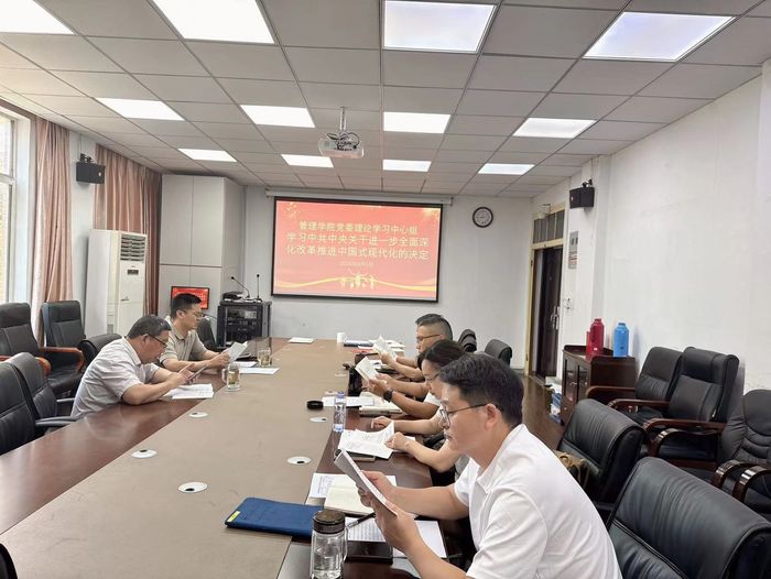 8月5日下午,新葡的京集团35222vip党委理论学习中心组在三牌楼校区有线楼306会议室开展学习贯彻党的二十届三中全会精神学习会,专题学习《中共中央关于进一步全面深化改革、推进中国式现代化的决定》(以下简称《决定》)。学院党委书记钟凯主持学习会。