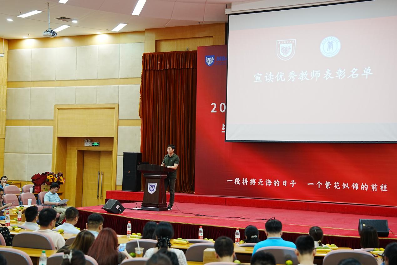 表彰会在雄壮的国歌声中拉开帷幕。新葡的京集团35222vip副院长周晓剑宣读优秀教师代表表彰名单,朱琳娜、李一鸣、徐侠、雷晶、王娟、孙建敏、林萍、彭英、张静、陈瑞义、李菲菲、李敢、仲泊远、渠胜男、安彦蓉、韩钰铃、孙莉等17名老师获得表彰。钟凯书记和杨佳伟总监为优秀教师颁发了纪念品和鲜花。优秀教师代表、学院首届教学贡献奖一等奖获得者雷晶老师分享了指导学生竞赛的心得体会。学生代表许志恒同学在发言中表达了对奉献在不同岗位的老师崇高的敬意和感谢。