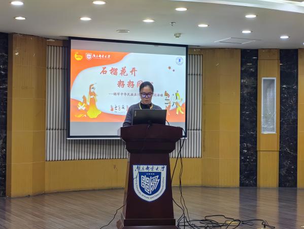 本次活动分为主题讲解、民族知识接龙、手印画团结和民族文化展示四个环节。在“石榴花开,籽籽同心”主题讲解环节,讲解员冯巾宁首先向同学们简述了中华民族共同体意识的概念。接着,对习近平总书记在全国民族团结进步表彰大会上的重要讲话内容进行详细介绍;以新疆扶贫为切入点,展示了铸牢中华民族共同体意识的意义与实践成果。