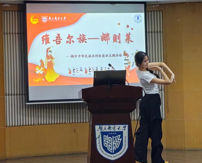 轻松愉悦的氛围中,部分团支部少数民族代表进行民族文化展示。林玉玲同学带大家领略了秀美壮乡的诗和远方,娜则莱同学以优美的舞姿展示出维吾尔族的异域风情,薛远雯同学将回族特色娓娓道来,杨舒雯同学领众人一览满族风采。同学们的表现异彩纷呈,诉说着中华文化的多样性和中华民族的凝聚力。