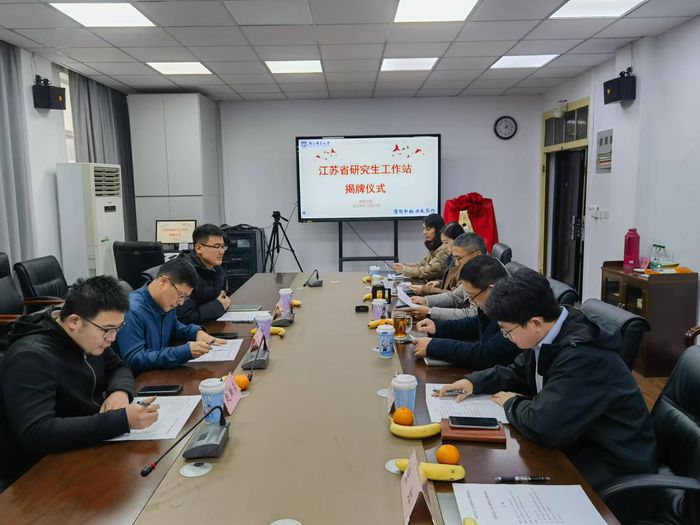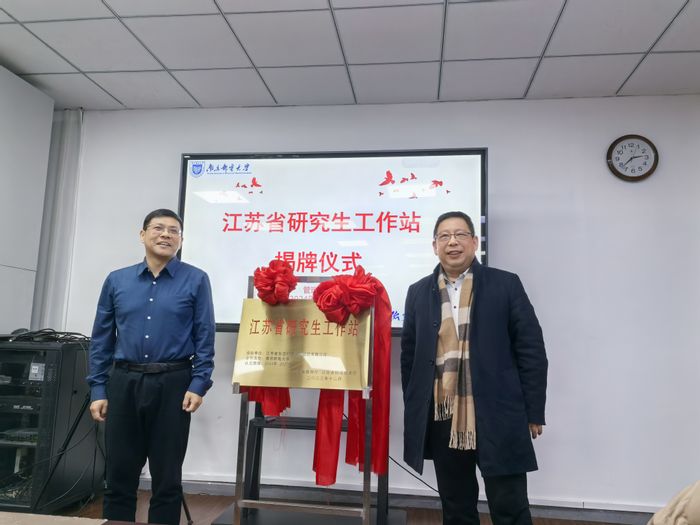 在与会嘉宾的共同见证下,省环保集团监测监控公司副总经理陈高、学院院长黄卫东共同为江苏省研究生工作站揭牌,拉开了我校与江苏省生态环境监测监控有限公司合作进行研究生联合培养的序幕。