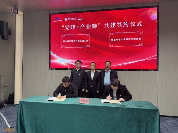 在签约仪式上,学院党委与锡山经济开发区党工委签署了“党建+产业链”共建协议,学院6个系党支部分别与中微龙图电子科技无锡有限责任公司党支部、上药控股江苏股份有限公司党支部、无锡市锡山区公众人力资源有限公司党支部、江苏华郢智能技术有限公司党支部、江苏达利园物流科技集团有限公司(众盟物流园)党支部、江苏集萃集成电路应用技术创新中心党支部等签署了合作共建协议。院长黄卫东为锡山经济开发区相关同志颁发就业创业导师聘书,副书记、副院长郭强,副院长周晓剑、张冲分别为锡山经济开发区党群工作部、无锡云创产业发展有限公司、中皓科创集团产研院等9家单位进行大学生实习实践基地授牌。全面开启校企(地)双方在大学生就业创业、科研合作、员工培训、MBA招生、实习实践等方面的深度合作。