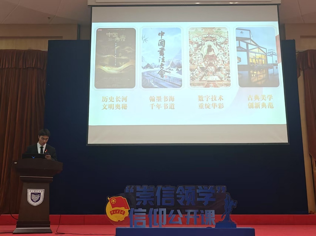 随后,吴金桂同学带来《扬古韵,创新潮——中华优秀传统文化创新与实践》的演讲。身为00后,他从独特的青春视角出发,解读中华优秀传统文化基因,用生动的当代语言讲述如何激活千年文明。他的精彩演讲,激发了同学们对传统文化的浓厚热爱,也让大家深刻认识到传承与创新传统文化的重大使命。