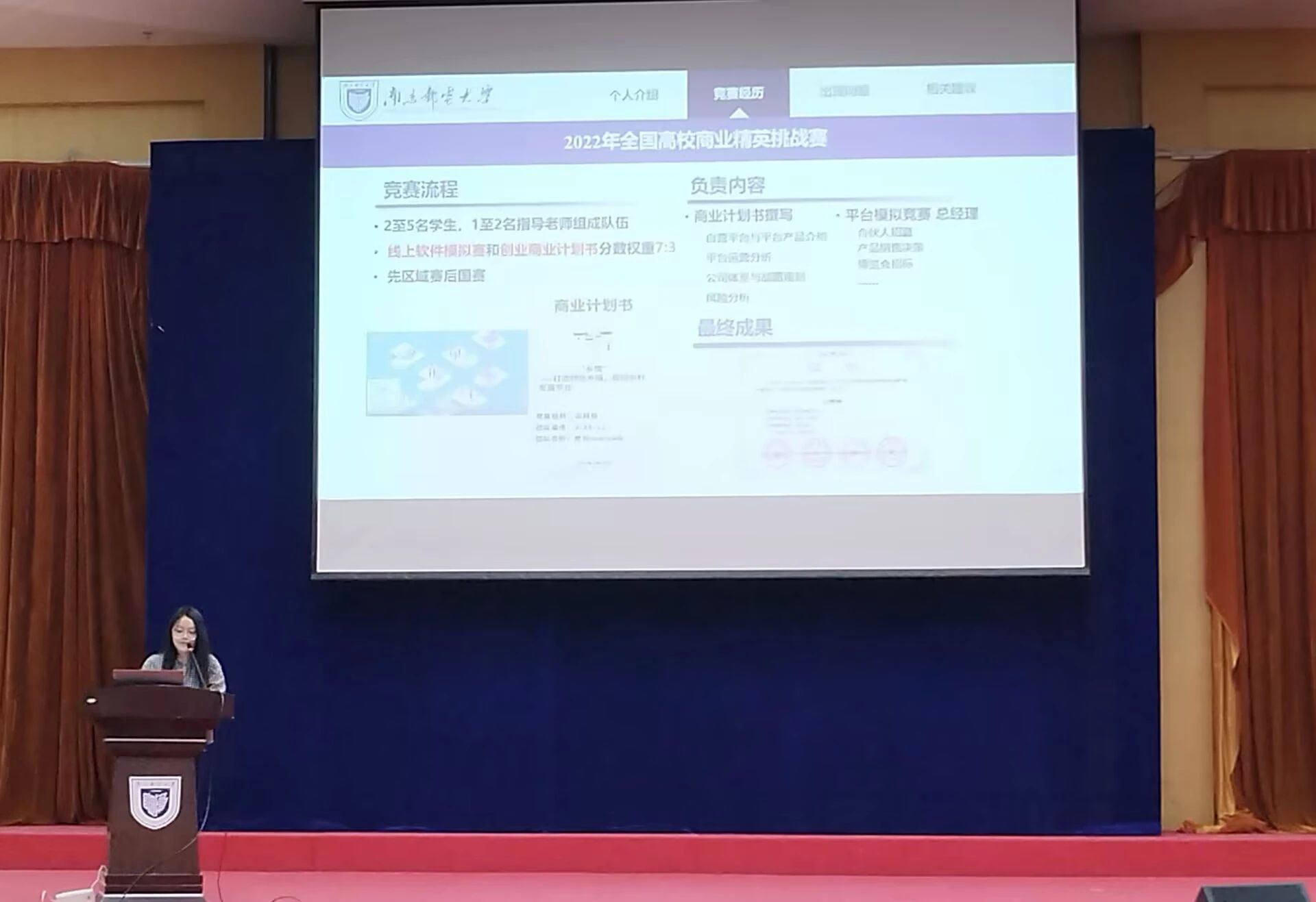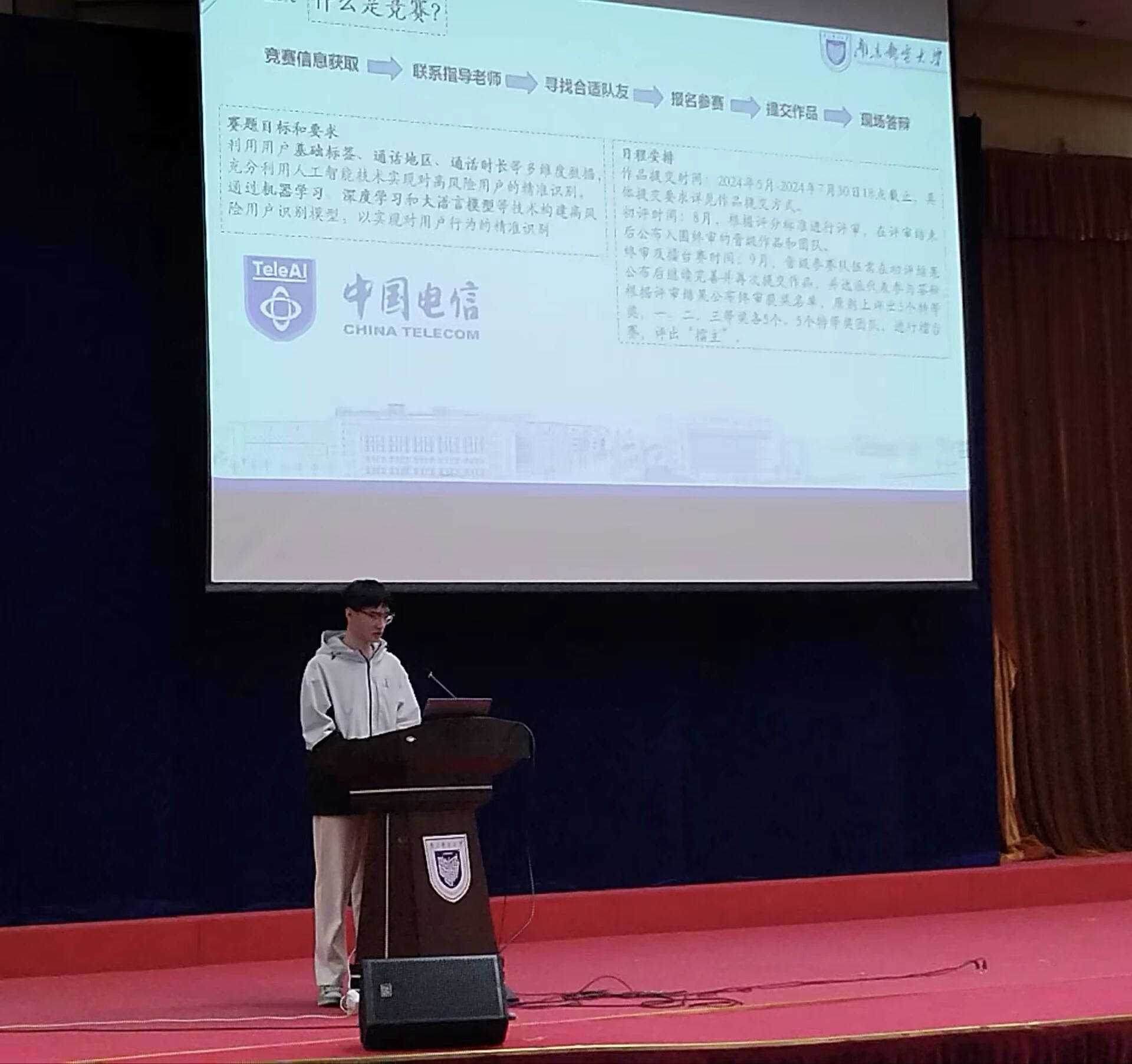 刘森嶺,曾获挑战杯“揭榜挂帅”专项赛全国特等奖、国家励志奖学金、硕士研究生国家奖学金、校一等奖学金、校二等奖学金。刘森嶺学长介绍了竞赛的含义、参加竞赛的原因以及如何参加竞赛,参加竞赛后如何把成果转化为科研成果