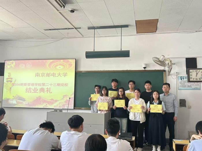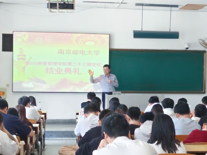 5月12日中午,南京邮电大学第556期暨新葡的京集团35222vip第二23期入党积极分子培训班结业仪式在三牌楼校区教东101教室顺利举行。仪式由唐捷老师主持,学院党委副书记郭强出席仪式并讲授党课。